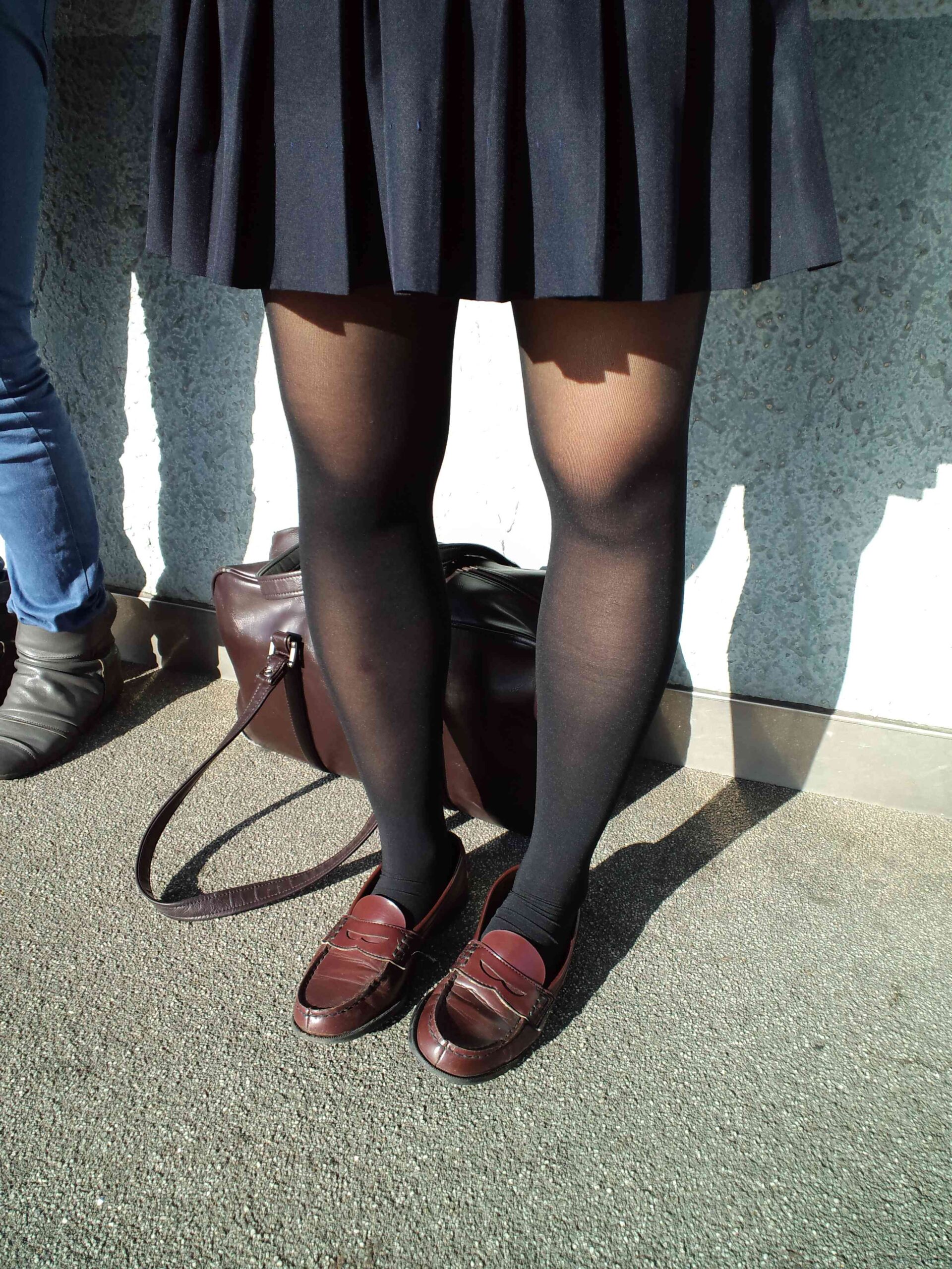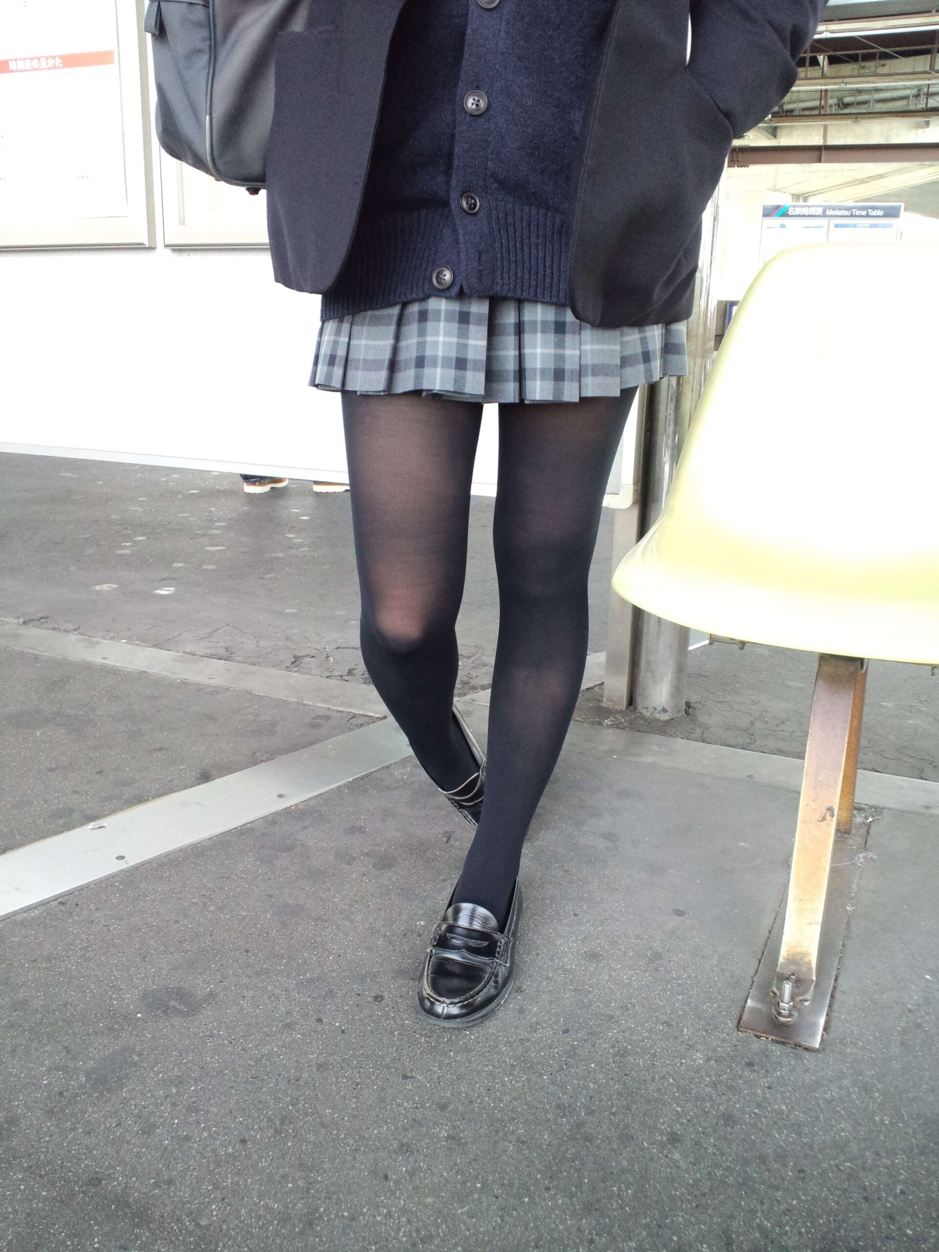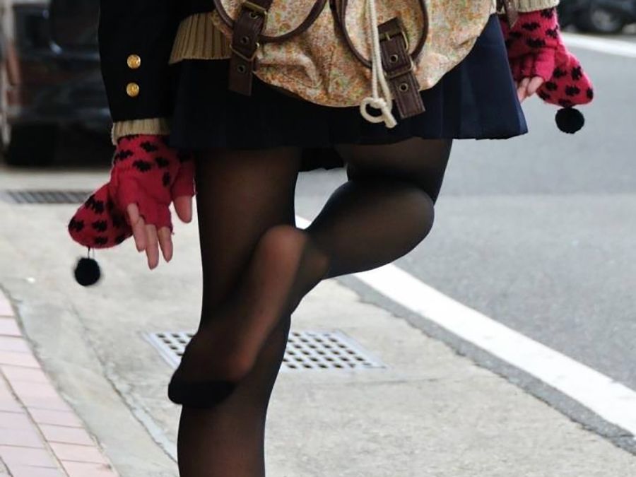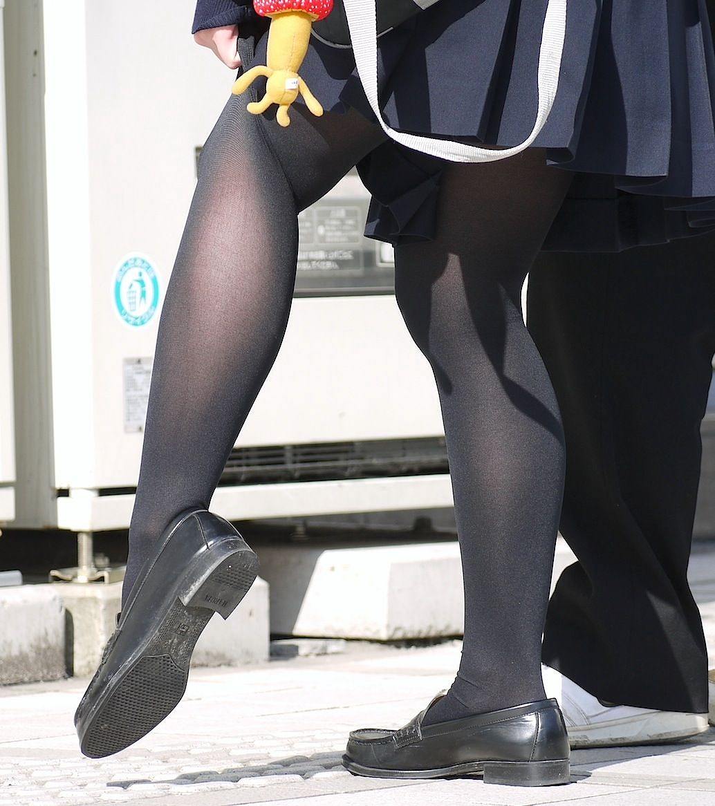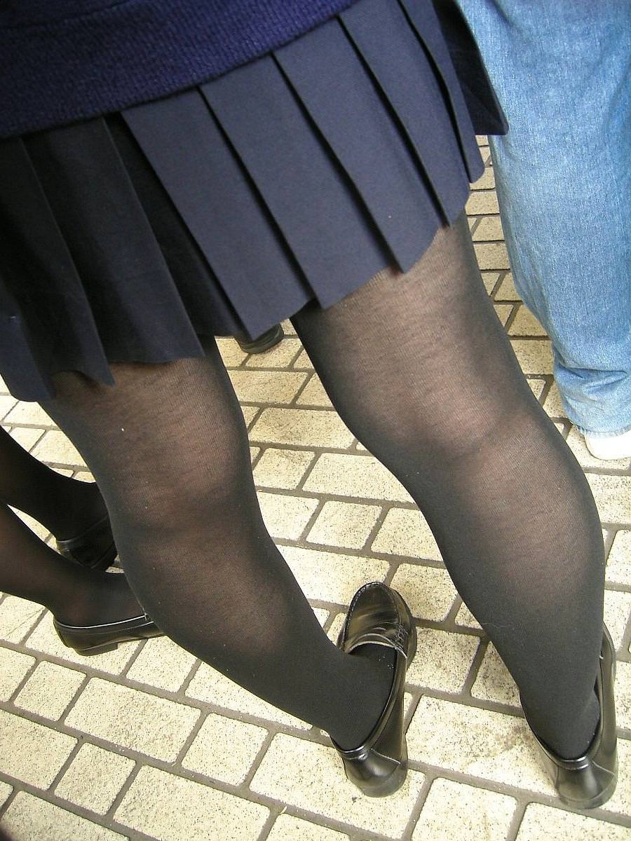 生脚は隠れてるけど透けてたり形まるわかりだったりで妙にエロい黒タイツJK画像