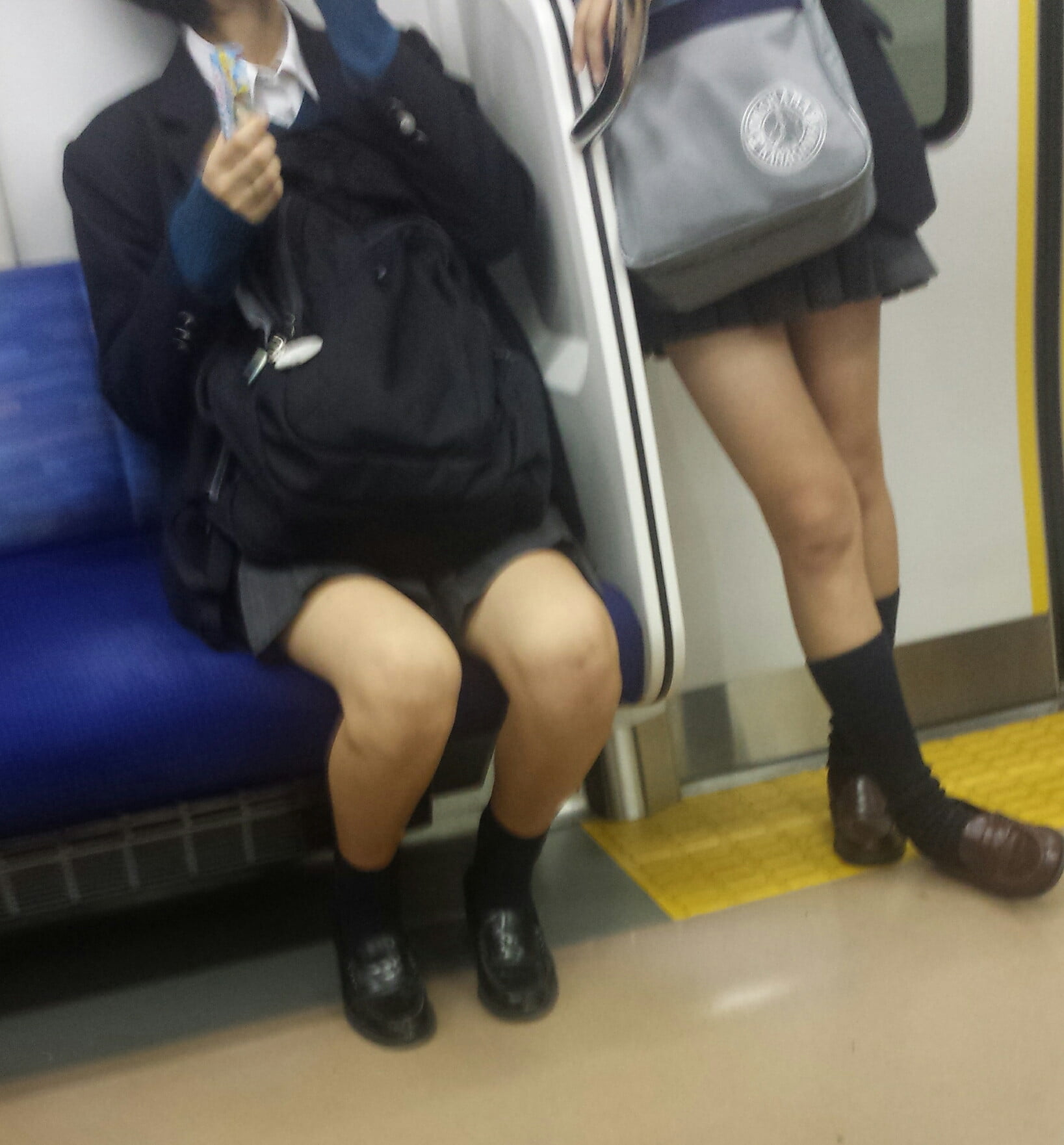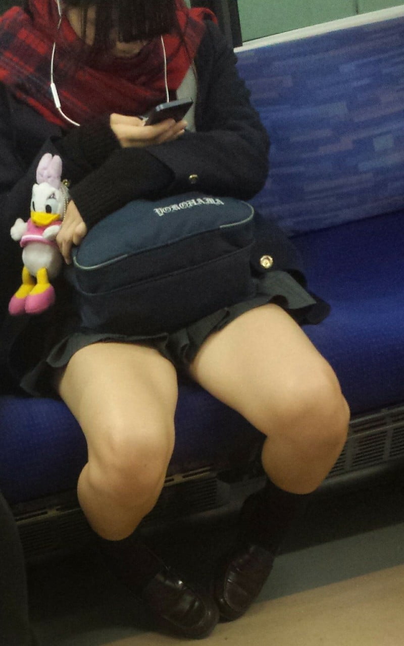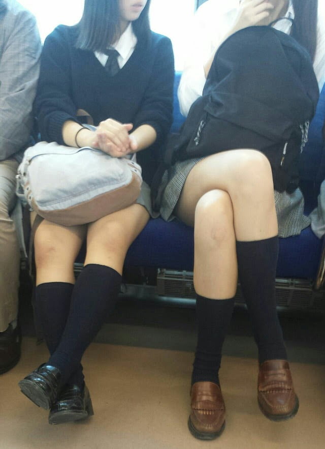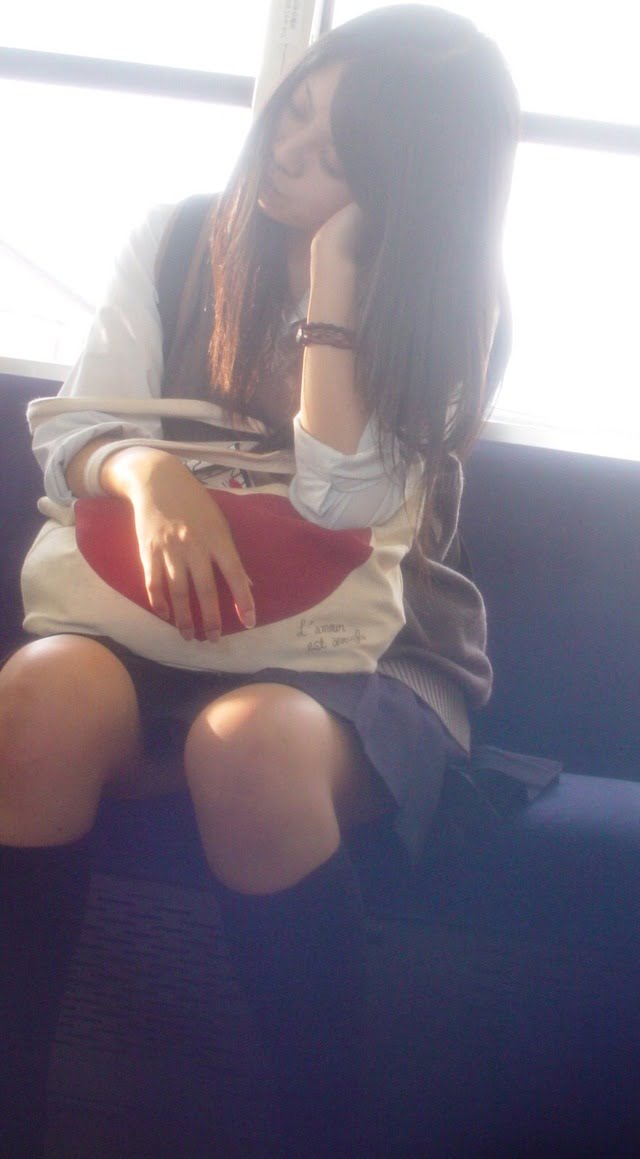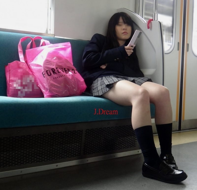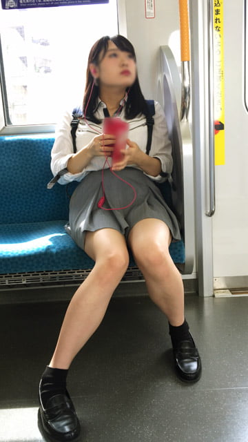 その場では凝視できなので…JKが電車の座席に座っている画像