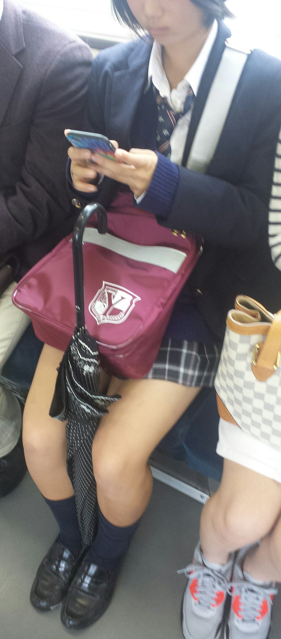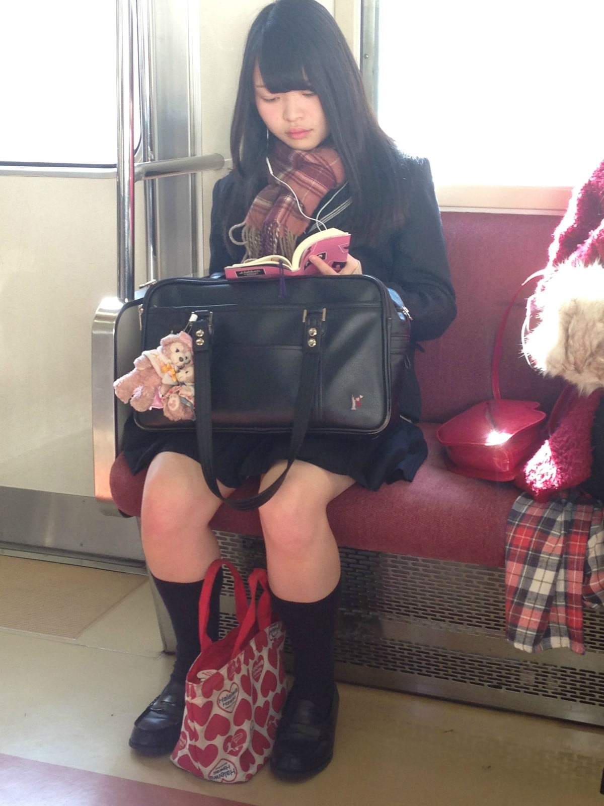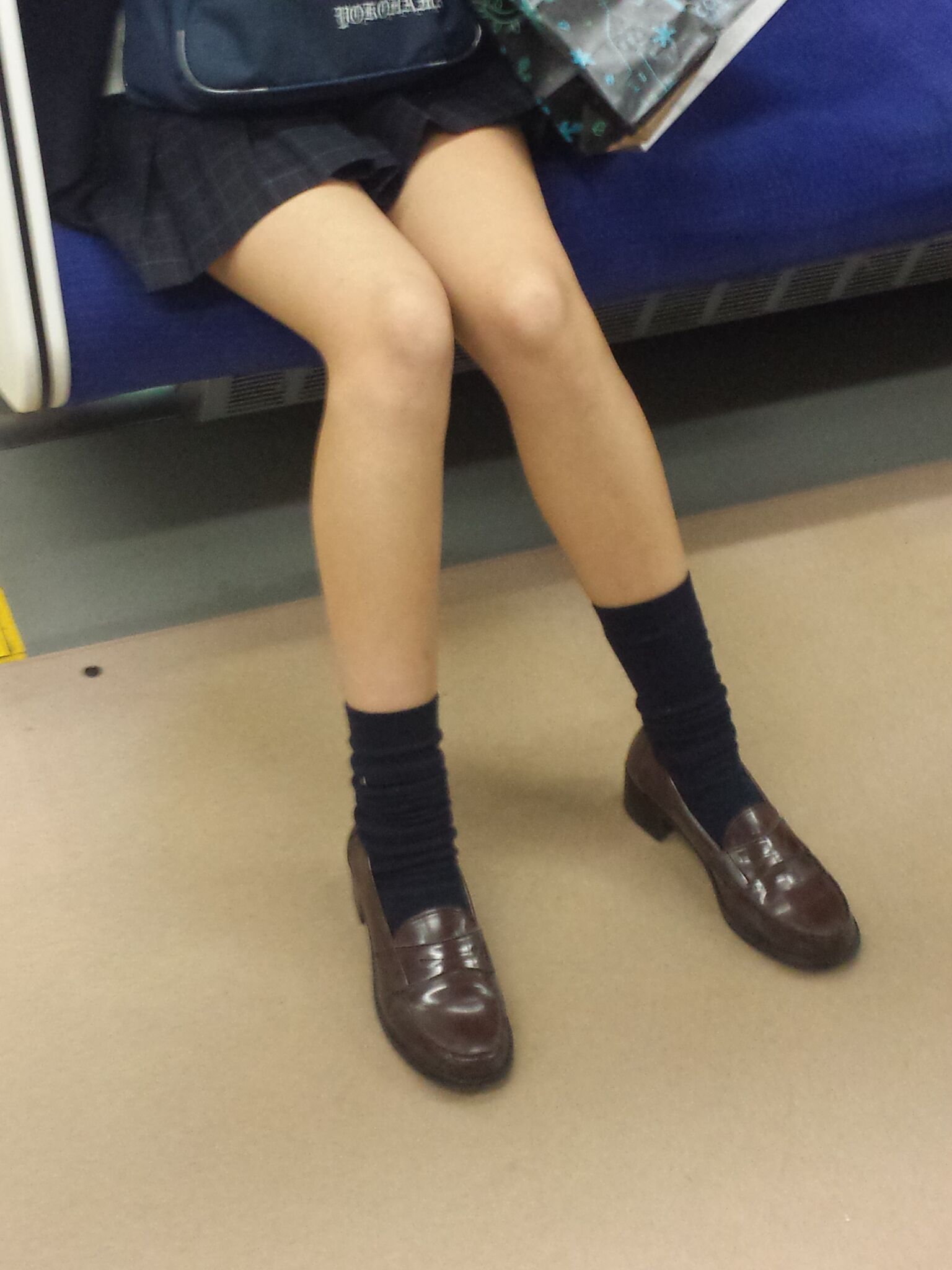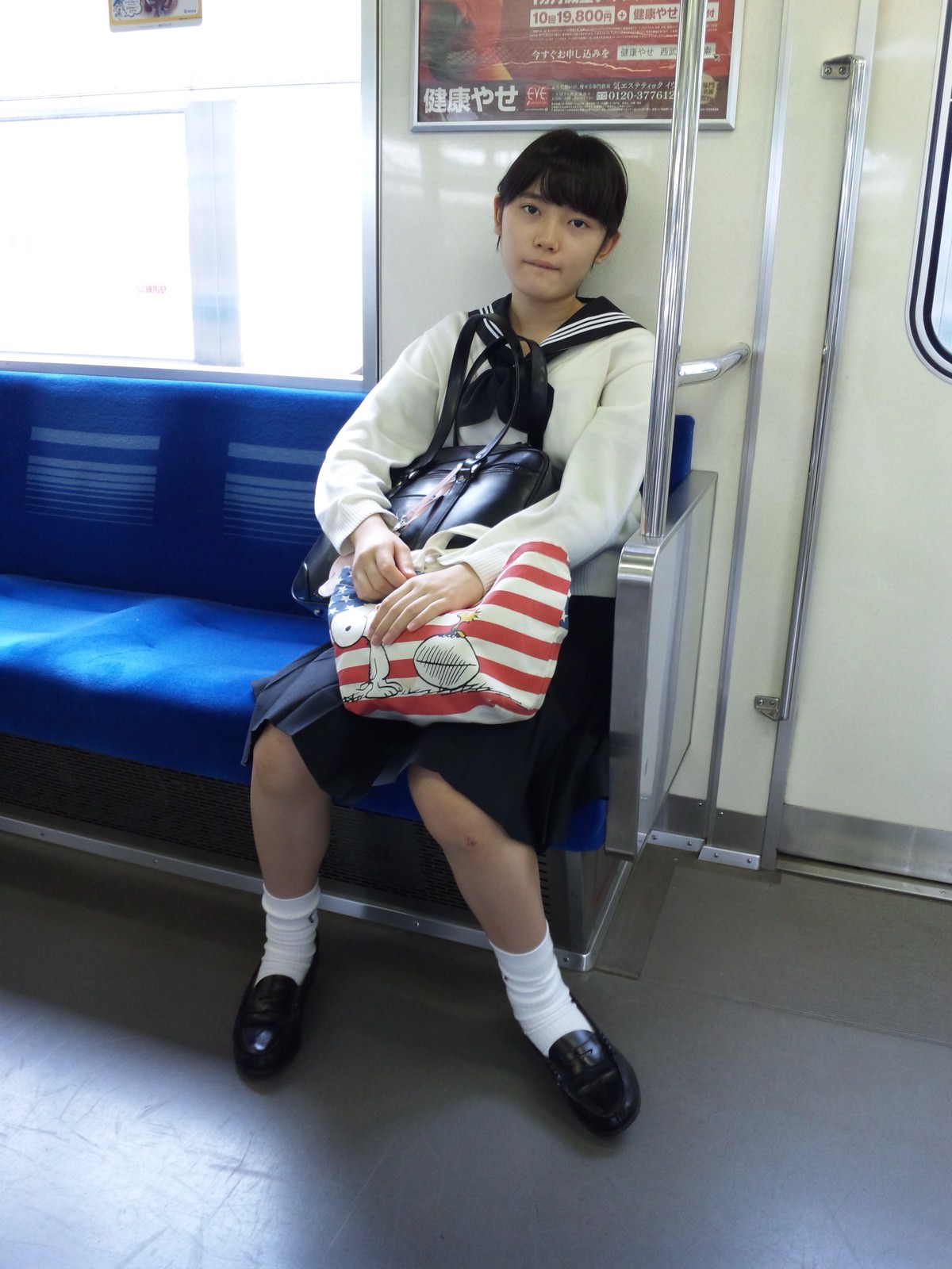 その場では凝視できなので…JKが電車の座席に座っている画像