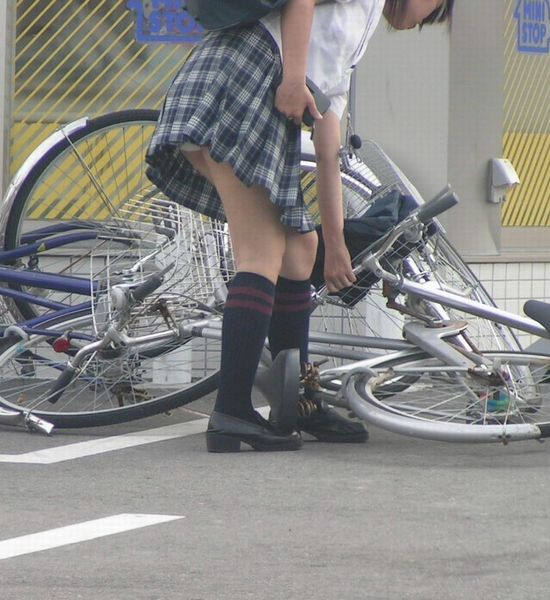 【画像】スカートひらひらつい見てしまうチャリ通JK