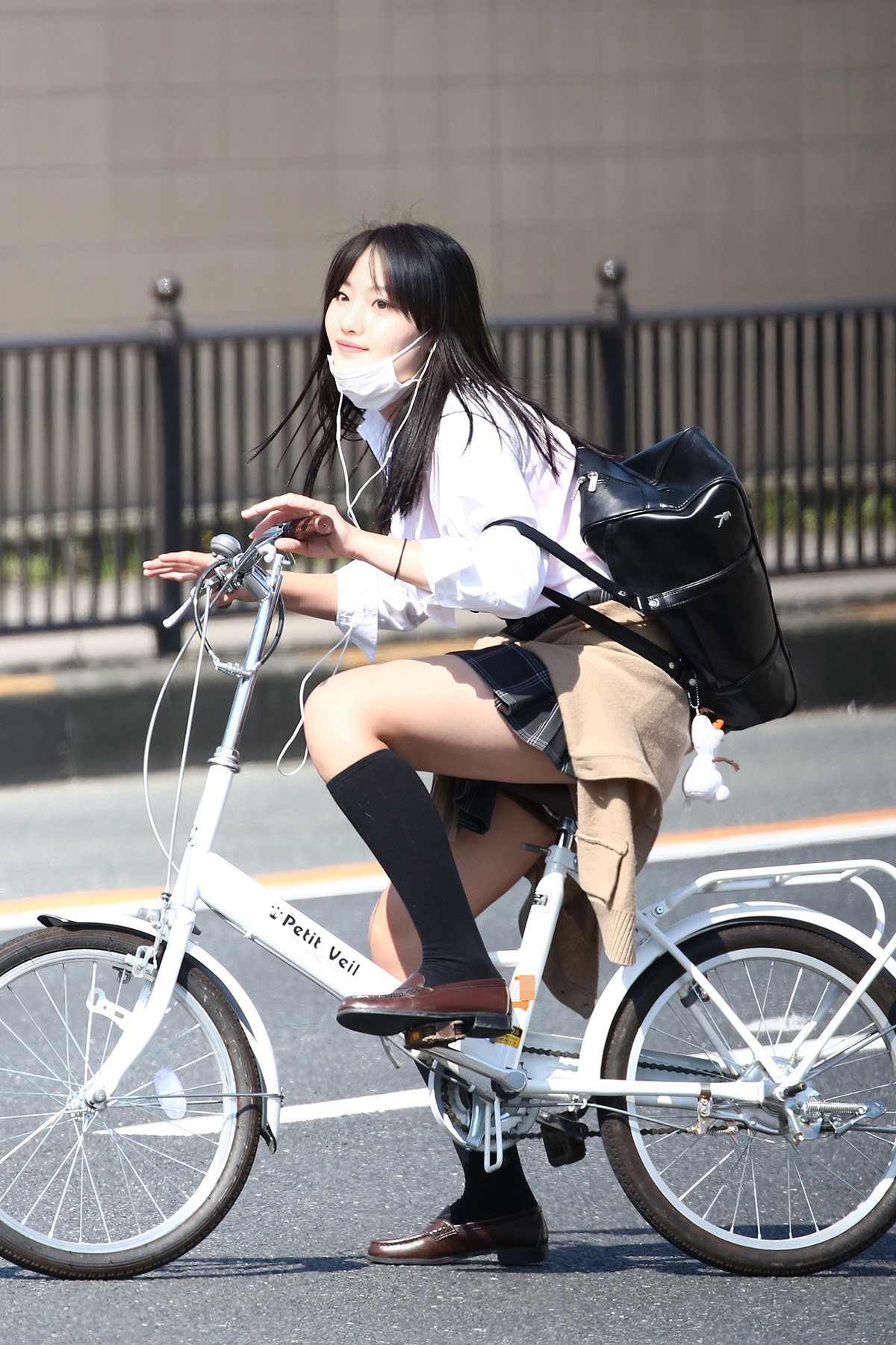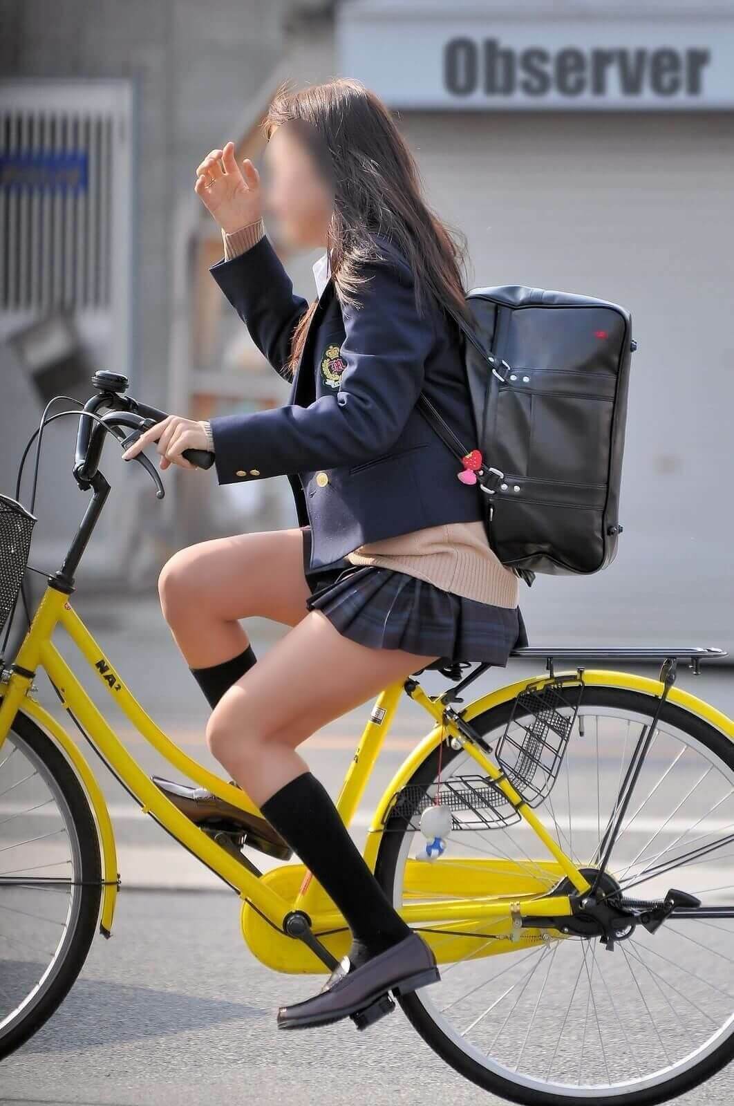 【画像】なんだか見えちゃいそうなハラハラワクワクの自転車JK