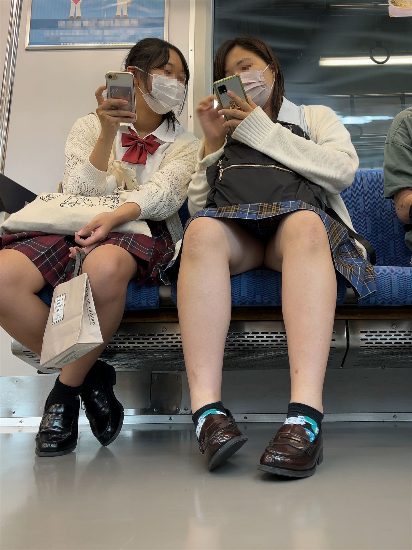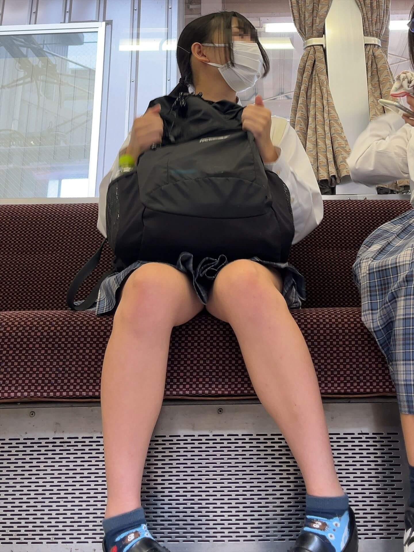 【画像】座ってるJKをローアングルから眺める