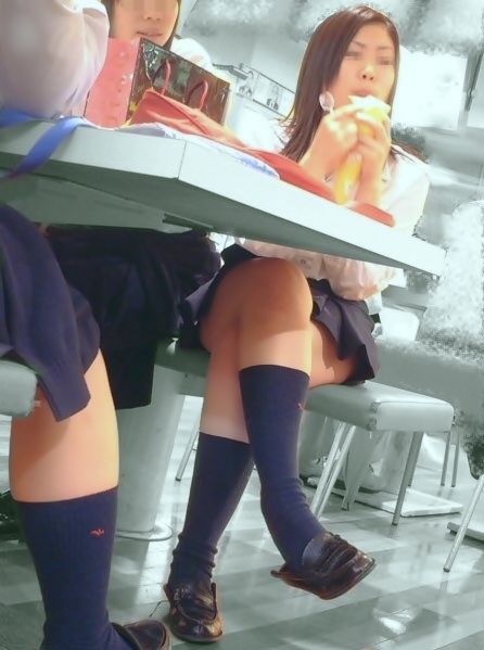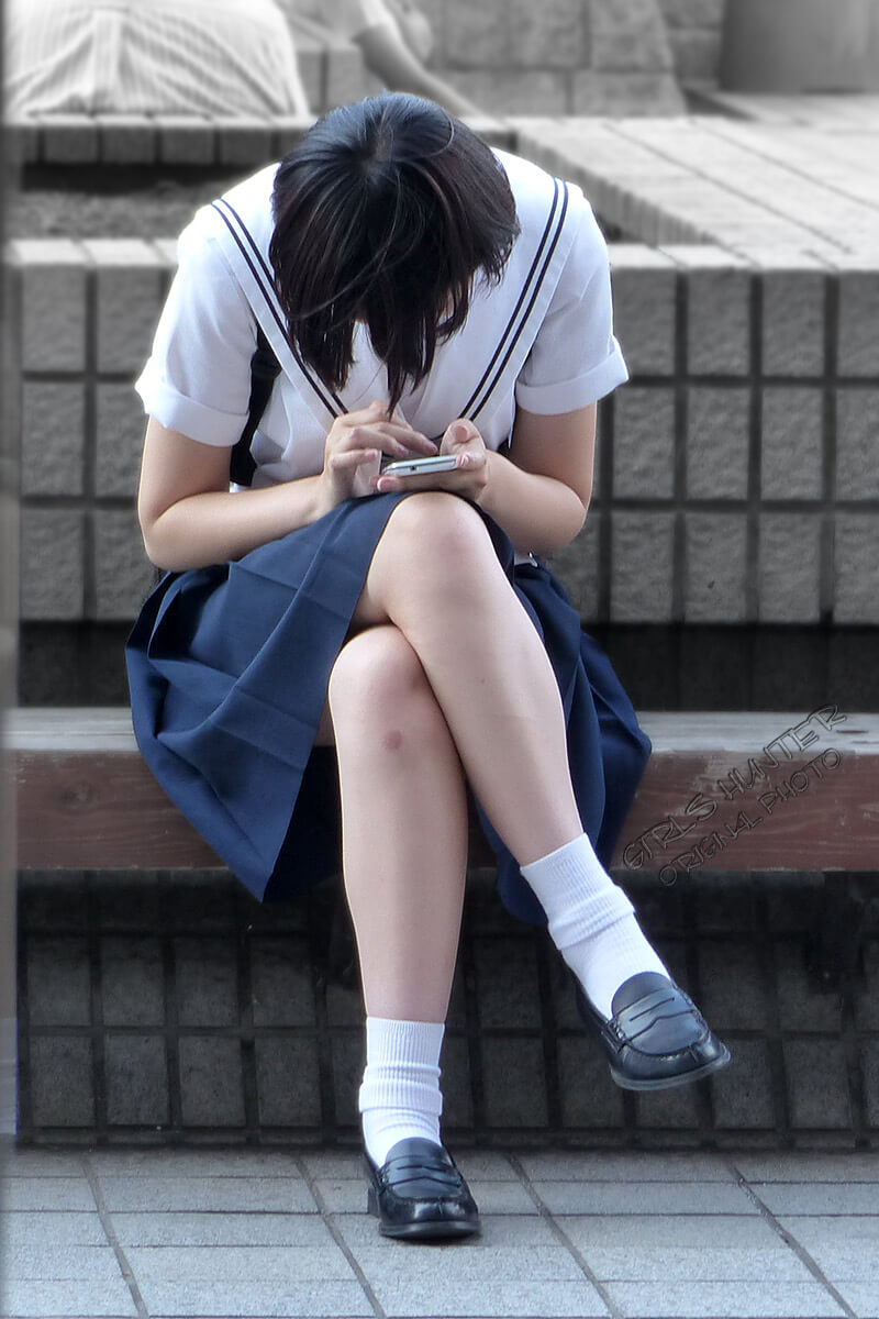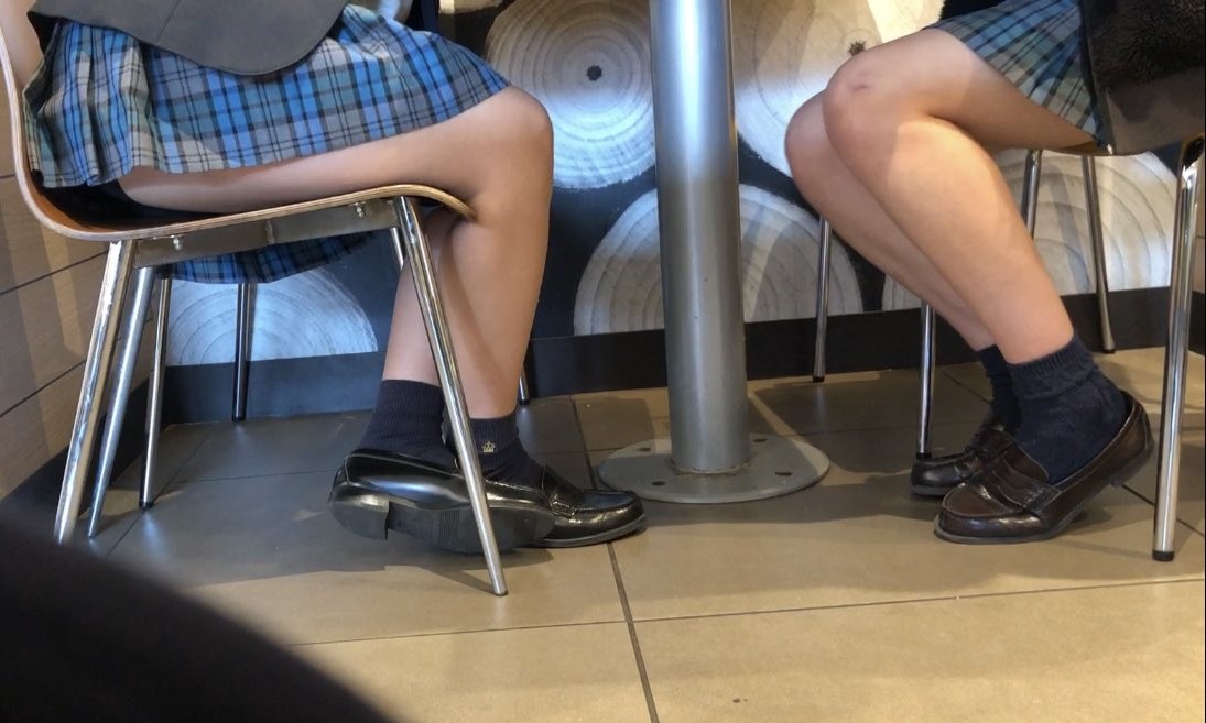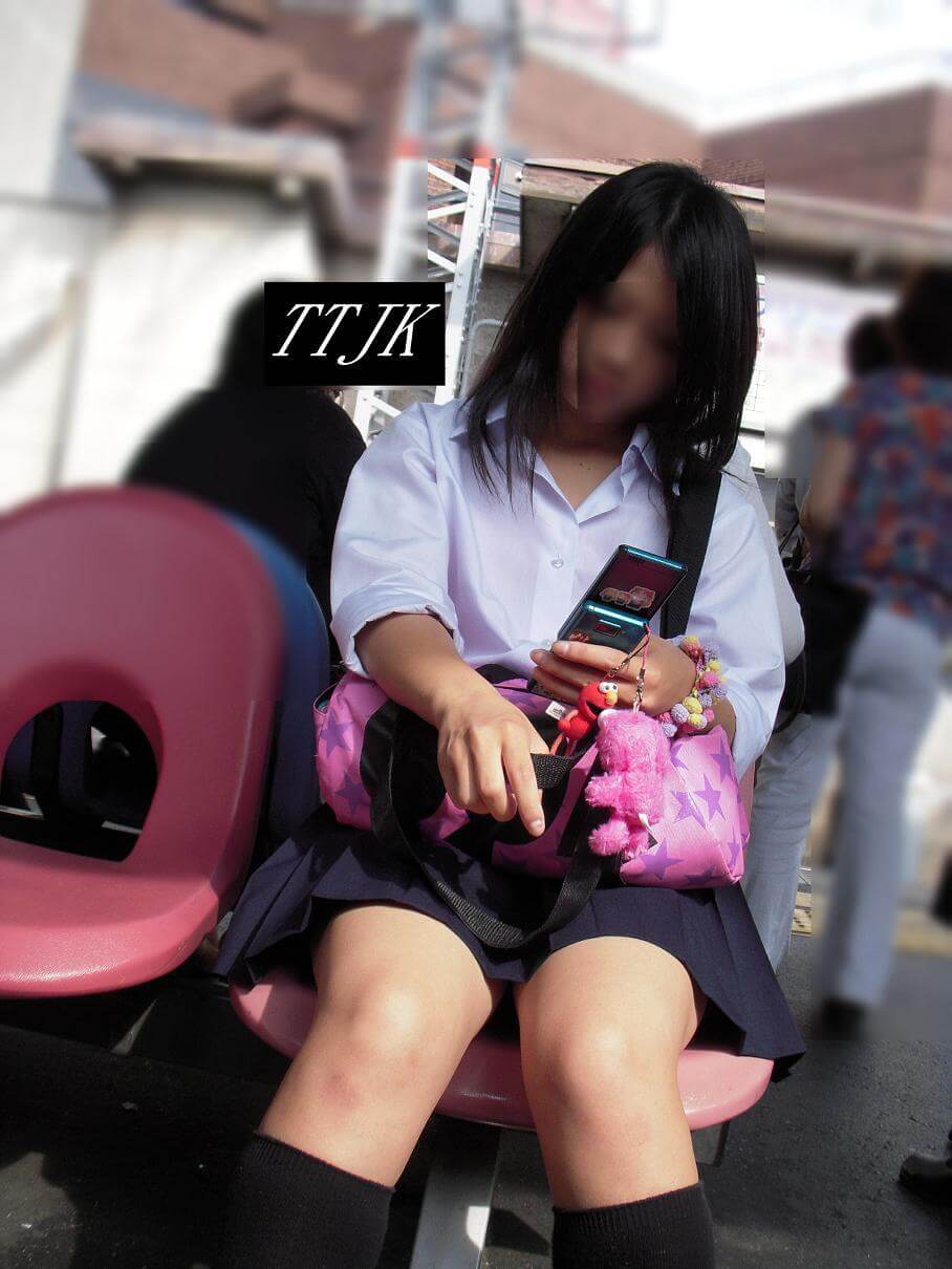 【女子高生】座っているところを激写されたJK画像