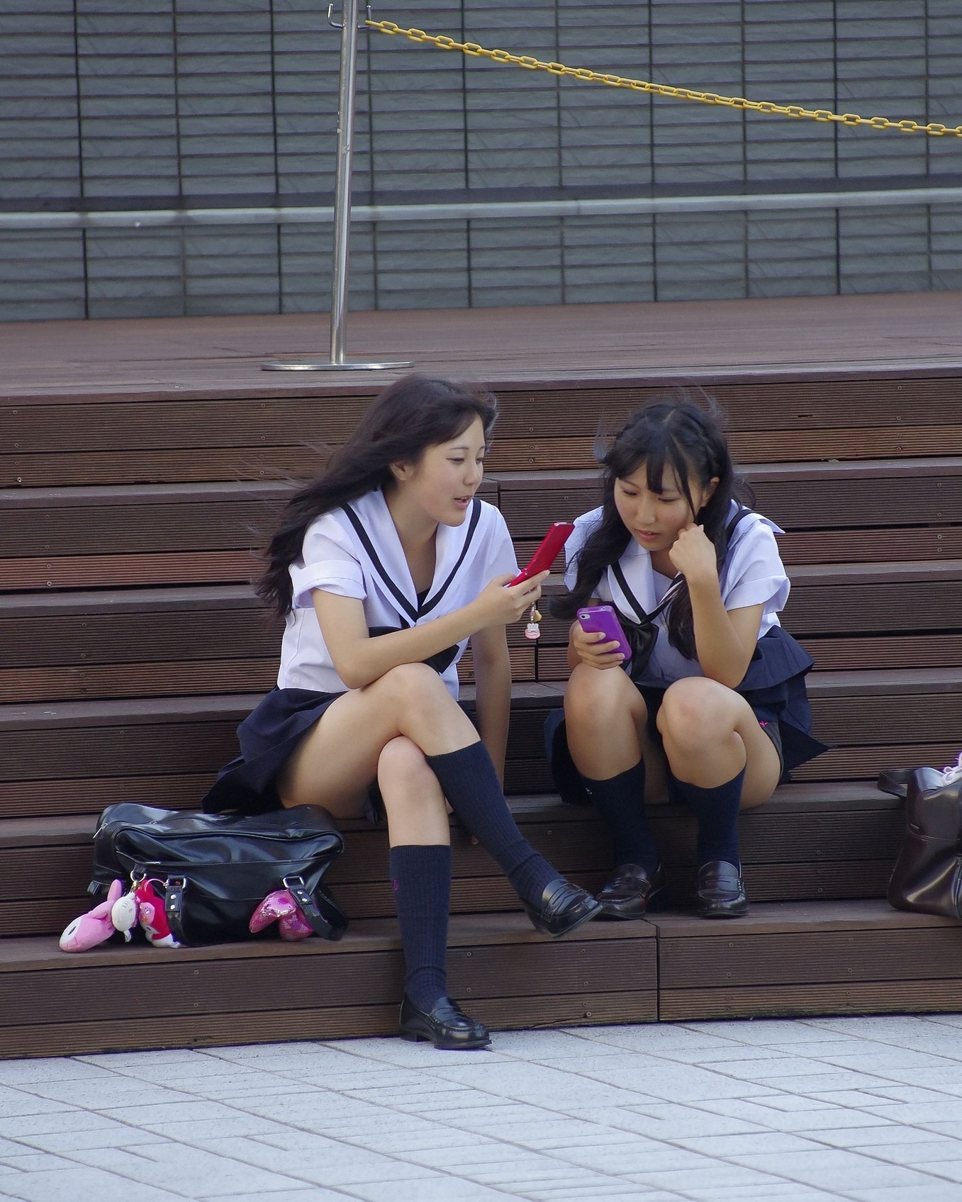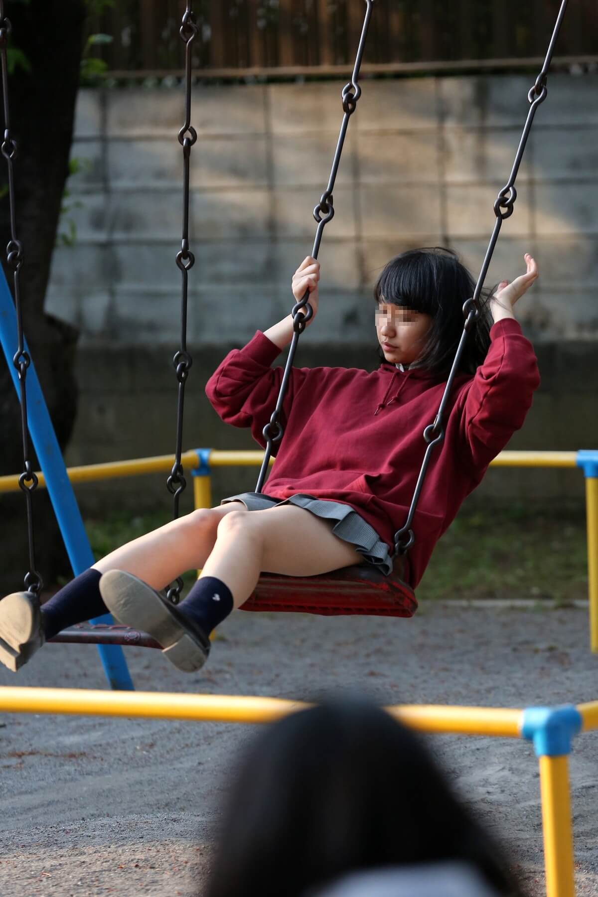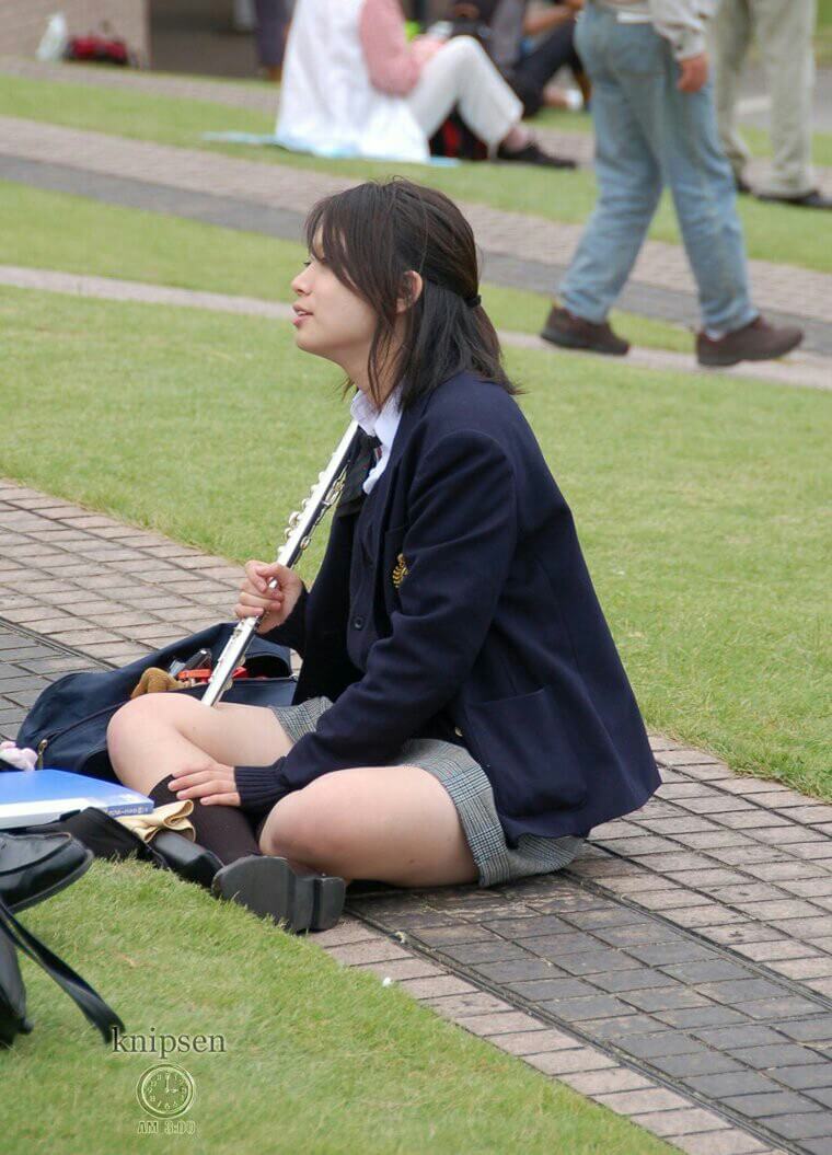 【女子高生】座っているところを激写されたJK画像