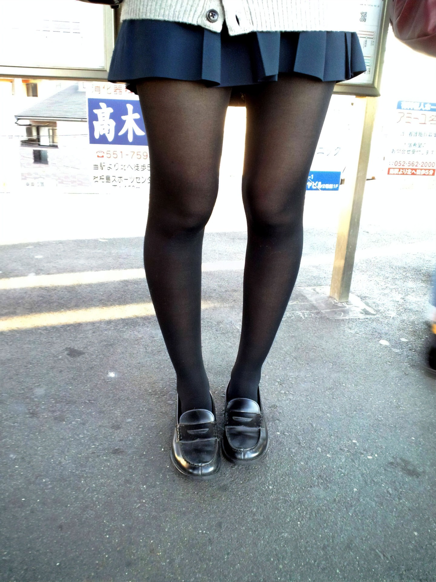 【女子高生】今日は肌寒いので黒タイツJKで