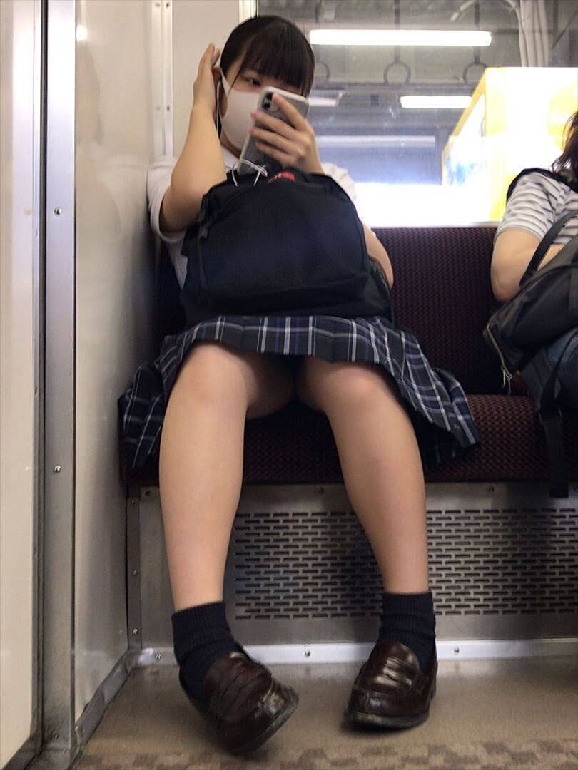 【女子高生】このちょっと内また感がたまらない!電車内のJK画像